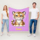 Este cobertor da Fleece com um tigre bebê com fundo roxo pode ser personalizado com qualquer nome que goste de tigres.
