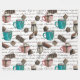 Um impressão de inverno fofo e confortável de chocolate quente e marshmallow, cacau, sundaes sorvetes e doces e biscoitos de chocolate. Padrão perfeito para um dia frio de inverno. Em cores castanho, lacrimejo, vermelho, branco e preto.