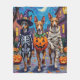 O Adorável Basenjis vestida com fantasias de Halloween carregar baldes de abóbora enquanto trick-or-trick sob o céu iluminado. Este design festivo põe em evidência a elegante construção da raça, a cauda enrolada e a expressão curiosa, capturando perfeitamente a atmosfera assustadora e divertida da noite de Halloween. Uma celebração encantadora para amantes de cães e fãs de Halloween.