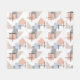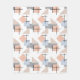 Este cobertor de velo médio tem um design de Bauhaus repetindo retângulos, quadrados, diamantes e triângulos em cores de praia de bronzeado, cinza, azul e laranja.