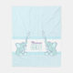 Dois elefantes de bebê azul-aqua super fofos em um cobertor azul-claro e branco de velo. Personalize com seu próprio nome e nome ou palavras da família. Outros itens correspondentes disponíveis. Reproduzido a partir de um desenho original de elefante, por www.mylittleeden.com no zazzle.