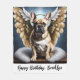 Este francês bonito tem asas de anjo ouro e um halo nesta trabalho de arte.