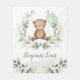 Este adorável cobertor de bebê apresenta um ursinho de pelúcia bonito segurando um balão em forma de coração enquadrado com uma linda camada de água verde