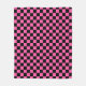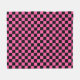 A vibrant checkerboard pattern of black and bright pink squares, creating a visually striking and bold contrast. The design is uniform and symmetrical.