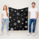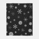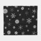 This cute and cozy fleece blanket features falling snowflakes on a black background.