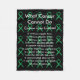 A arte apresenta a "Faixa de Sensibilização Verde" para mostrar suporte para cancer anal. A arte mostra uma fita verde de conscientização e o poema de "O que o Cancer não pode fazer" gira ao redor dela. As palavras do poema dizem "O que o Cancer não pode fazer, o Cancer é tão limitado... Não pode aleijar o amor. Não pode destruir a esperança. Não pode corroer a fé. Não pode destruir a paz. Não pode matar amizade. Não pode suprimir memórias. Não pode silenciar a coragem. Não pode invadir a alma. Não pode roubar a vida eterna. Não pode conquistar o espírito. -Autor Desconhecido" Faça com que a equipe de conscientização do cancer personalizada fique em branco para você ou como presente para um ente querido. Adicione suas próprias palavras ou imagens a este cobertor flexível para obter presentes especiais de cancer de fita de reconhecimento.