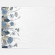 Design floral elegante com flores azuis e beges, com caules altos e folhas em fundo branco limpo, criando um aspecto macio, moderno e sofisticado.