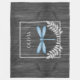 Mantenha-se quente em queda fria e noites de inverno com um cobertor personalizado de velinha rustica azul. O design de cobertor apresenta uma libélula vibrante adornada com folhagem delicada contra um fundo de madeira rústica de cinza escura. Itens de presentes adicionais disponíveis com este design, bem como uma variedade de cores.