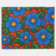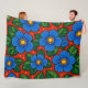 Cobertor De Velo Blue Flowers and Green Leaves on a Red Background