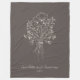 Boho Flower Line Art Drawing Personalized Names Fleece Blanket in Dark Brown