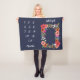 Marinho cobertor azul de velo com um quadro floral no qual você pode colocar sua menina e tirar fotos mensais. O quadro floral apresenta rosas, margaridas e pansias em coral, pincel, laranja, branco e rosa quente. Adicione o nome do seu bebê a um lindo roteiro de caligrafia.