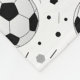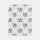 Esta cobertura tem um teste padrão preto e branco de bolas de futebol com elementos do design geométrico.