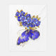 Joias, azul, safira, borboleta flor cintilante com asa decorada com flores azuis preciosas com folhas de ouro sobre fundo branco.