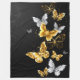 Douradas, joias e borboletas brancas sobre fundo preto. Borboleta Ouro.