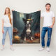 Cobertor De Velo Boston Terrier Pumpkins Halloween Assustado