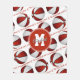 Este bonito cobertor de velo de basquete apresenta um padrão espelhado de bolas de cesto que alternaram painéis vermelhos e brancos - a frase "O campo de basquete é o meu lugar feliz" em uma fonte casual, escrita à mão juntamente com formas cardíacas em trechos vermelhos entre as linhas angustiadas das bolas de basquete - o nome de atleta e o monograma podem ser personalizados no grande pendante do círculo - o fundo é branco personalizável monograma com a letra varsity do jogador ou número jersey - por katz_d_zynes