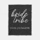 Cobertor simples, moderno e elegante com citação "Bride Tribe" em fonte manuscrita em preto e branco em um estilo moderno. Os nomes podem ser personalizados com os nomes das suas damas de honra. Você pode usá-lo para a noiva, damas de honra, meninas de flores ou a mãe da noiva. Os acessórios coordenados para a equipe da noiva funcionam bem para propostas de damas de honra, chá de noiva, despedida de solteira, jantar de ensaio, manhã do casamento ou café da manhã após o casamento. É um presente personalizado atencioso para a comitiva da noiva.