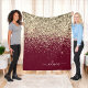 Cobertor de Fleece com Nome e Inicial Monograma Dourado e Burgundy Falso Brilho Glitter. Isso torna o presente perfeito para aniversário de 16 anos, casamento, chá de noiva, aniversário de casamento, chá de bebê ou festa de despedida de solteira para alguém que ama luxo e estilos chiques.