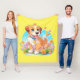 Um cobertor de velo com uma fotografia de um filhote fofo sentado entre as flores. Ele parece muito feliz por estar cercado por flores e borboletas. O presente perfeito para dar àqueles que amam cachorros. Contém conteúdo generativo.