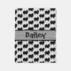 Este cobertor de velo personalizado apresenta uma silhueta de um cão Pomerano, ladeado no fundo e colocado para um nome no centro.