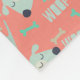 Amantes de cães de todas as idades, crianças e adultos, adorarão esses lindos, divertidos e caprichosos itens de design para casa, escritório e pessoal com cães azuis leves, ossos de cães de aqua e argila, e texto que lê Woof sobre fundo de coral.