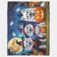 Uma cena divertida de Halloween com um cachorrinho travesso espiando de uma abóbora esculpida, cercado por vibrações assustadoras de outono. Com charme atrevido e cores de outono, é o toque perfeito de humor para a temporada.