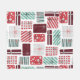 Um padrão perfeito e alegre com várias caixas-presente embrulhadas em vermelho, verde e branco com diferentes padrões, como listras, bolinhas e cheques. Cada presente é amarrado com um arco delicado, criando uma atmosfera festiva e alegre. A mistura de formas, cores e padrões adiciona um toque lúdico, mas harmonioso, capturando a essência das celebrações de feriado e doação de presentes.