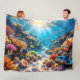 Escape to a peaceful underwater paradise with this breathtaking coral reef fleece blanket as large scale design captures of vibrant sunlight marine sanctuary teaming with colourful tropical fish, including clownfish and angelfish nestled among intricate corals delicate seashells and starfish the golden sunrays piercing through the crystal Clearwater create a warm serene atmosphere that transforms any room into a coastal getaway crafted from a professional grade 8192 x 8192 pixel high resolution file this blanket offer offers museum quality clarity