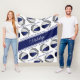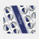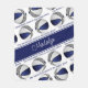 Este bonitinho cobertor de bola de basquete apresenta imagens realistas de bolas de basquete que têm painéis azuis, brancos e cinzas alternados organizados em um padrão ansioso espelhado - a frase "O campo de basquete é meu lugar feliz" em uma fonte casual, escrita à mão, em trechos azuis entre as linhas angustiadas das bolas de basquete - o nome do atleta pode ser personalizado em uma faixa de cor azul semelhante branco-capaz - por katz_d_zynes