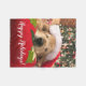 Snuggle acima sob uma cobertura acolhedor esta estação do Natal! Características de design uma fotografia de um cão do golden retriever que esteja adormecido em um travesseiro sob uma árvore e vestir um chapéu vermelho do papai noel. O texto customizável lê, "boas festas!"