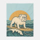 Este cobertor de lançamento ensolarado é a adição perfeita e macia para decorar sua casa de praia. A arte de surf retrô apresenta um bulldog muito legal que cavalga uma onda sem fim na frente do sol dourado. Projetado com energia antiga da Califórnia, o visual desgastado lhe dá um toque autêntico, como se tivesse sido tirado diretamente de uma loja de surf vintage. A almofada reversível correspondente está disponível em minha loja.