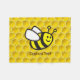 Cartoon voador de abelha sorridente sobre fundo de colmeia de abelha sem costura.