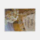 Personalize o charmoso local e flores que se casam com o bordel com os nomes da noiva e noiva e a data da cerimônia de casamento. Este cobertor de casamento suave e suave apresenta uma fina fotografia floral de uma flor seca de hydrangea, colar de pérolas brancas, véu de noiva e lenço vintage aparado com lenço de linho com um fundo de madeira de caseiro castanho. Ele faz uma ideia de presente de manutenção de excelente para uma fazenda rural casual, mas clássica, celeiro rústico, fazenda ou festa de noivado ocidental, chá de panela ou tema de casamento.