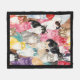 Modern Cats in Multicolour featuring, various cats in black and white, blue and white, purple, pink, yellow and green super soft fleece blanket / throw.