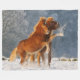 Dois cavalos islandeses, um bando e suas mamães jogando bola de neve numa paisagem de neve, pôneis bonitos fotografados por Katho Menden. Este cobertor de carne mole e aconchegante é uma ideia de presente para os viadutos.