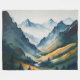 Este cobertor captivador de velo horizontal apresenta uma cena de montanha espantosa, renderizada com mestria em tons de azul e bronzeado que evocam um senso de serenidade e admiração. No coração da composição, um riacho cristalino mede graciosamente a montanha abaixo, suas águas refletindo a matiz do céu, criando uma mistura harmoniosa de cores que exalta tranquilidade. As montanhas, representadas em diferentes tons de bronzeado, erguem-se majesticamente contra o pano de fundo, seus picos tocando o céu, sugerindo tanto sua grandiosidade quanto a beleza eterno da natureza.