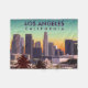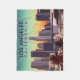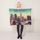 Este cobertor personalizável apresenta um horizonte colorido dominado por arranha-céus e palmeiras do centro Los Angeles com um belo pôr do sol californiano ao fundo.