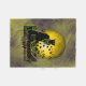 Uma silhueta do gato preto de Théophile Steinlen para o clube do Noir do Le Chat num cenário moderno para o Grás Mardi com uma lua amarela brilhante, muitas miçangas, e as palavras "Laissez les bon temps rouler", que significa "Deixem os bons tempos rolar."