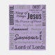 Jesus é um belo nome para um salvador maravilhoso. Significa "Deus que veio nos salvar". Aqui estão dezessete nomes usados na Bíblia para descrever Jesus. Inscrição moderna em preto e cinza com fontes na moda. Fundo roxo. Modelos fáceis de usar para adicionar (ou subtrair) texto.
