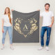 Um cobertor de velo de cinza moderno, elegante e elegante com monograma cardíaco de folhagem dourada.