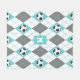 Este cobertor temido de futebol divertido apresenta um padrão de xadrez azul-turquesa, cinza e argila branca com "costura" turquesa que se estende diagonalmente através das formas de diamante e bolas de futebol preto e branco sobre as formas de diamante-turquesa - personalizadas com o monograma do atleta - por katz_d_zynes