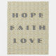 A arte apresenta a "Cinza e Anjo Dourado da Fita" para suportar a conscientização sobre o cancer cerebral pediátrico. A fita dourada é para cancer infantil e a fita cinza é para cancer cerebral. A arte mostra um anjo da guarda segurando uma fita de reconhecimento de ouro e cinza e as palavras "Esperança, Fé, Amor". As palavras podem ser alteradas com suas próprias opções personalizadas. Faça cobertores personalizados de conscientização do cancer para você mesmo ou como presente para um ente querido. Adicione suas próprias palavras ou imagens a este cobertor de quimio flexível para obter presentes especiais de cancer de fita de reconhecimento.
