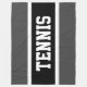 Este design desportivo divertido apresenta letras grandes, fortes e clássicas, dentro a, uma faixa preta larga com listras brancas sobre uma cinza escura com "TÊNIS" soletrado em frente e no centro. Torne-o seu: As cores e o texto neste design podem ser personalizados.