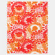 Esse cobertor de velo grande tem uma design de círculos decorados com linhas e círculos feitos de pontos repetidos em vermelho e laranja.