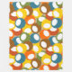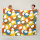 Este grande cobertor de velo tem design moderna de médio centenário de círculos em azul, verde, castanho, siena, amarela e laranja com dentro de ovais brancos.