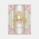 Cobertorzinho de bebê princesa rosa e dourado com carruagem floral dourada bonita em um fundo floral rosa e dourado giratório lindo. Este cobertorzinho de bebê princesa é facilmente personalizado com o nome do bebê ou o texto de sua escolha no estilo de fonte que preferir.