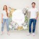 Cobertorzinho de bebê safari menina com adoráveis animais de safari e lindas flores rosa em um fundo de cor escolhida por si. Este cobertor de bebê safari pode ser personalizado com o texto à sua escolha.