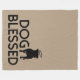 O " cão abençoou" a cobertura do velo do anjo do pitbull, trabalhos de arte pretos mostrados em um fundo tan. Estúdio do design de DoggyStyle, comemorando o melhor amigo do ser humano! estúdio 2015 do design de DoggyStyle do ©
