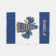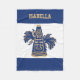 Cobertura temático do velo do azul, do ouro e do cheerleader branco, com os gráficos de um megafone do cheerleader do azul e do ouro, e de poms do pom, no meio. Personalize o nome para seu cheerleader favorito.