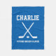 Cobertura conhecida personalizada do velo do jogador de hóquei em gelo. Jogador de hóquei futuro. Fundo feito sob encomenda da cor com logotipo do disco e das varas mais suas nome, sobrenome, nome da equipe ou citações engraçadas. Ideia legal do presente dos esportes para o jogador de basquetebol, treinador, fã. Faça um para o bebê, o sobrinho, o filho, o neto, a filha, a neta etc. apropriada para meninos ou meninas novas.
